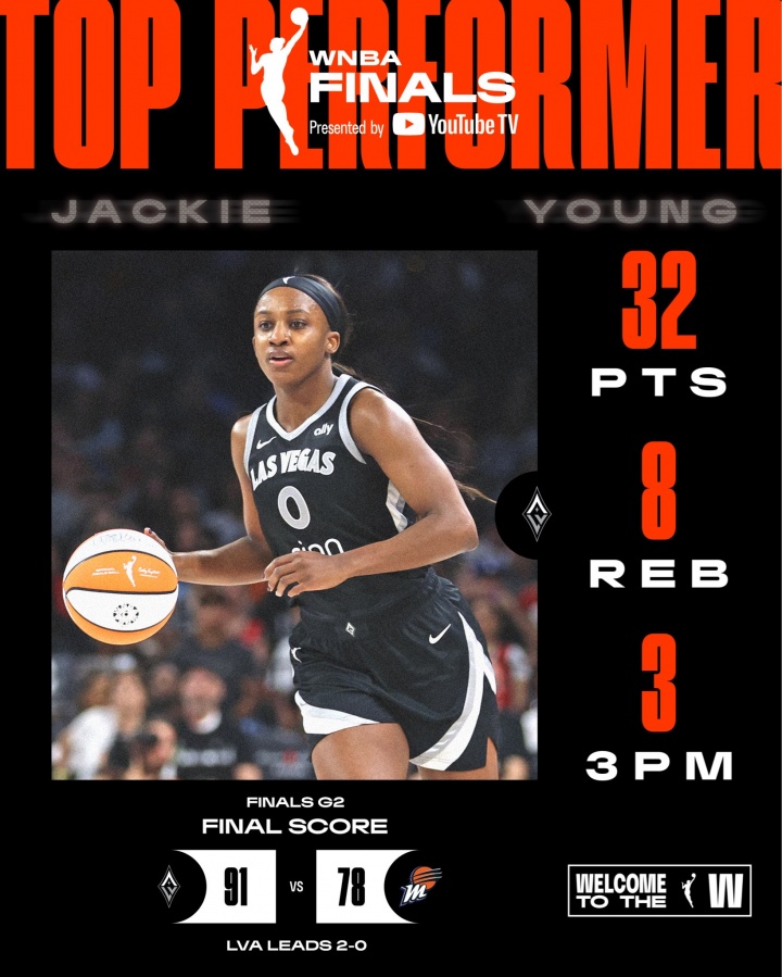 在半决赛与印第安纳狂热的抢五大战中,杰基-杨轰下32分4篮板10助攻1抢断0失误,成为WNBA历史上首位单场至少贡献30分10助攻且0失误的球员。