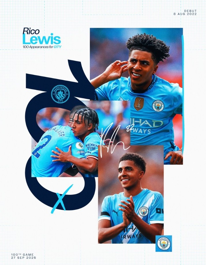 在比赛第83分钟,刘易斯替补出场,这是他代表曼城参加的第100场正式比赛。刘易斯因此成为少数能够在21岁之前就在一线队出场达到100场的本队青训球员,在英超时代,曼城过去只有理查兹和福登这两名青训球员曾经做到过。